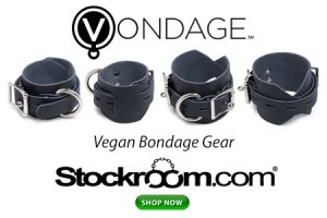If you are someone who would rather not use animal products, finding BDSM gear of any sort that gives you the same feel as leather but is conscious of your choices is difficult at best. The Stockroom has presented an answer and I’d have to say they are pretty good! What am I talking about? I’m talking about Vondage, Stockroom’s new Vegan-friendly bondage gear. I was offered the chance to look them over and try them out myself and I jumped at the chance! (Stay tuned for Thursday’s post if you want a chance to try out Vondage for yourself! Subscribe now to get Submissive Guide delivered to your inbox!)