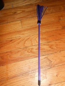 The bitch stick is made of duct tape and is 18 inches in total length. It has a nice rubbery sting.