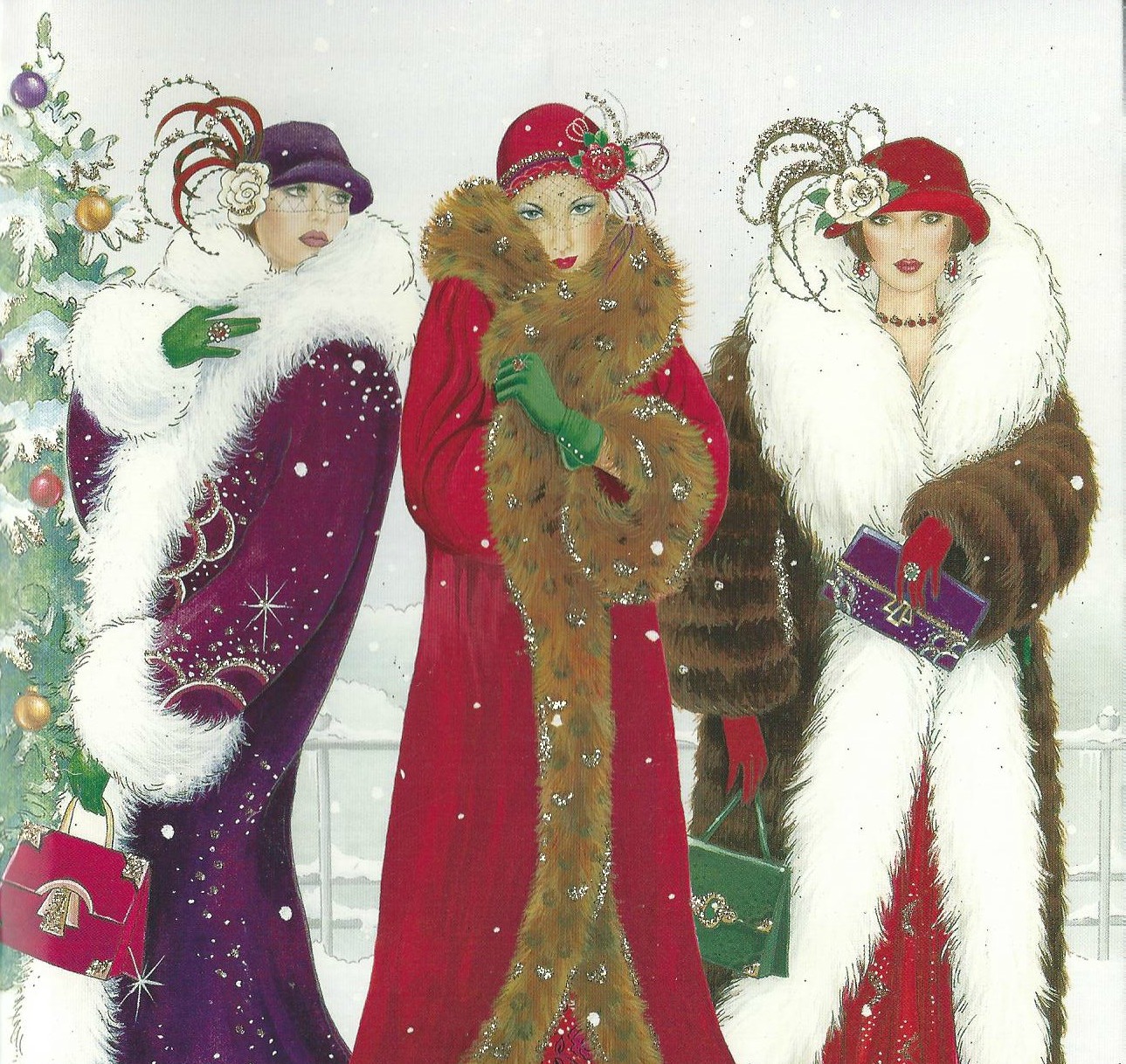 Here's a post card of three art deco-styled Winter beauties, just to get you in the mood.