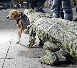 I get a real kick out of pets in costumes. It's a new craze, really. Part of the modern tendency to treat our pets like people, or even like children. But, darn it, some of those costumes are really clever, and so cute! Even if our pets feel embarrassed. Let's look at some of my favourite pictures.