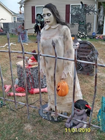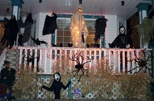 My decorations are pretty pedestrian compared to some I've seen. They don't groan, dance up and down, or screech. And these are just indoor decorations. Some people really go all out when it comes to their outdoor decorations, second only to Christmas in their scope and expense. Have you seen anything like this in your neighbourhood?