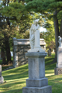 We were out for a bit of a drive today, and I said, "Let's go to Mount Hope Cemetery so I can look for inspiration for my next book cover." Mount Hope is the home of the statue that was used for my first mystery cover, Framed for Murder. It inspired me to use cemetery photographs as the theme for my series' book covers. Mount Hope is great because it's an older cemetery with many graves from the 19th century when statuary was popular.