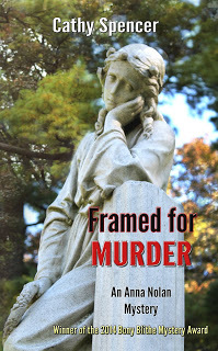 Covers can often be a matter of trial and error. I paid to have someone create a cover for my first Anna Nolan mystery, Framed for Murder, and never really liked it. Part of the problem was a lack of communication with the designer, and part was that the designer just wasn't very good, but I was new to the business and didn't know much about the elements going into a cover. Then I came up with the idea of using a cemetery photograph for the series, and I've been creating my own covers ever since.
