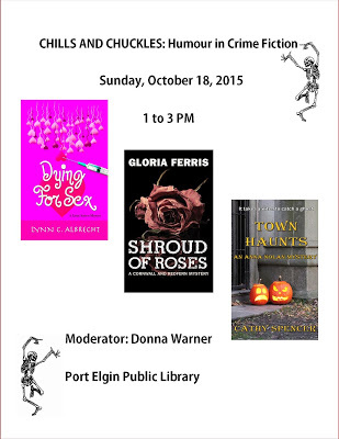 Talk about combining business with pleasure! Next weekend I'll be staying at one of my favourite Ontario vacation spots, Port Elgin, to talk about humour in crime fiction. I'll be joined by fellow authors Gloria Ferris and Lynn C. Albrecht, with panel moderator Donna Warner, to talk about how we balance murder with comedy. In case you haven't tried it, it's not easy!