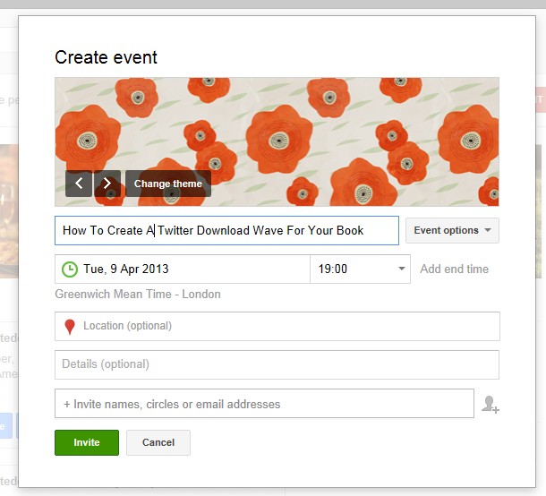 Obviously to use this feature you are going to need a Google+ account. If you haven’t already got one I’m giving away a copy of Google+ eXplosion which explains exactly how to open an account plus much more. One of the biggest benefits of Google+ Events is the fact that anyone using Gmail or Google Calendar will easily be able to add the event right onto their calendars. With just the click of a button, all the information and details about that event will populate in their calendars. What a time saver! Furthermore, the event will automatically be added to the Google Calendars of anyone who is already in the Circles you invite.