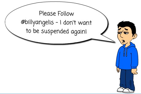 I will keep you posted as to how effective this campaign is but the best way to monitor my progress is to Follow at @billyangelis. Just don’t laugh if I get sent to the Twitter naughty corner again!