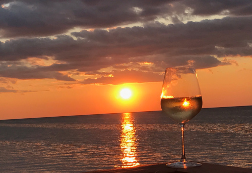 What I find most impressive about this photo is that I caught the “thumbs up” sun reflection in the wine. Have a great Wednesday! ~ Phil