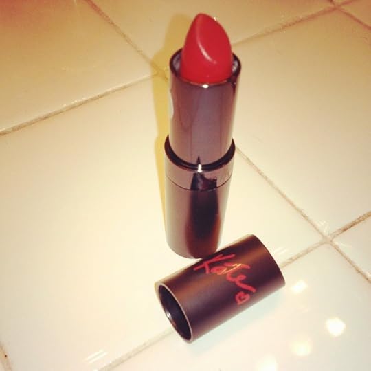 For Halloween I also bought a lipstick by Rimmel called Rosetto. It's from Kate Moss's line and has a really great, luminous red color without any orange undertones. I cannot wear orange or yellow, so this is great. I need solid reds or pink reds, and it is surprisingly hard to find a solid red.