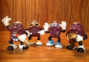 But first, I promised last week I’d tell you about the California Raisins who are my muses. When I went to work as a reporter at The Lebanon Enterprise in the 1980s (I was three or four years old at the time.), I passed a Hardees every morning on my way to work. Ok, it wasn’t exactly between me and work…in fact, I had to pass work to get to it, but I couldn’t help myself because Hardees had cinnamon raisin biscuits on their breakfast menu. (Along with Krispie Kreme doughnuts and British yogurt, I will eat cinnamon raisin biscuits in Heaven.) At the time, Hardees gave away a little plastic California Raisin guy with every order. I collected roughly ten thousand of them. I kept a full set of four. They lived beside my typewriter (If you’re younger than 30, Google “typewriter.” There’ll be pictures.) and later my computer for the next quarter of a century. I told people I couldn’t write without them, which was true. Eventually, they became like a lucky penny, a baseball player’s special bat or a golfer’s putter. Couldn’t write unless those little purple dudes were singing silently for me. But I also told people the Raisins were the source of the stories in my head, and that wasn’t true.