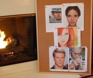 Is it a good practice to have pictures of your characters? Does it help you get more into their heads to see their faces? Does it keep you focused, and help you not to stray from the description you gave on page 3 when you’re on page 300? Or is it stifling? Does lit limit your creativity? Does your mind need a blank slate on which to paint your characters, not a real-life image?