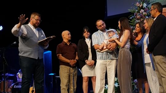 Elias Angel Aznaran, age 2 1/2, was dedicated to the Lord as were his parents in front of our church family. In the congregation were seated hundreds of faithful, praying friends who have loved our little boy by providing for them. Including: meals for them during his long 7 month cancer treatments, helping clean and organize their home. They donated not only time, but their financial support as well through his Go Fund Me campaign.
