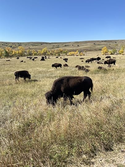 After we were satisfied we hit the road east through Wyoming. The countryside of Wyoming is beautiful. We saw “Amber waves of grain,” and lots of bison grazing under “spacious skies.”