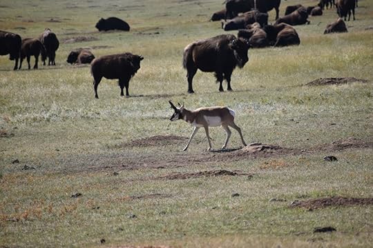 We also saw for the first time antelopes in the wild. This one was among the bison and the prairie dogs minding her own business. Of course my sister and I started singing, “Oh, give me a home where the buffalo roam, where the deer and the antelope play.”