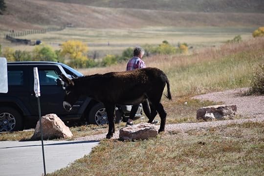 When we got to the Bison Center we were surprised to see wild burros, as they called them, in the parking lot. My sister couldn’t wait to get up close to pet them. And they were just as happy to greet her.