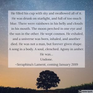 Each day, after I go through some revisions, I find a snippet from what I just revised that I am stupid-proud of. I pretty it up with a picture that somehow fits the excerpt, and I post it online. Not many people seem to see it, even fewer people care, but it helps me immensely, to see something I’ve created in the world, getting the occasional thumbs-up, sometimes a comment. It’s a trickle, but it’s enough to realize that my art has value outside of myself, enough to survive on its own, and someone, somewhere, liked it enough to read it.