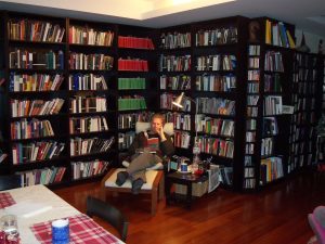 He reads everything, revises his writing obsessively and plays jazz. His wife Claudia shares his passions and always encourages him.