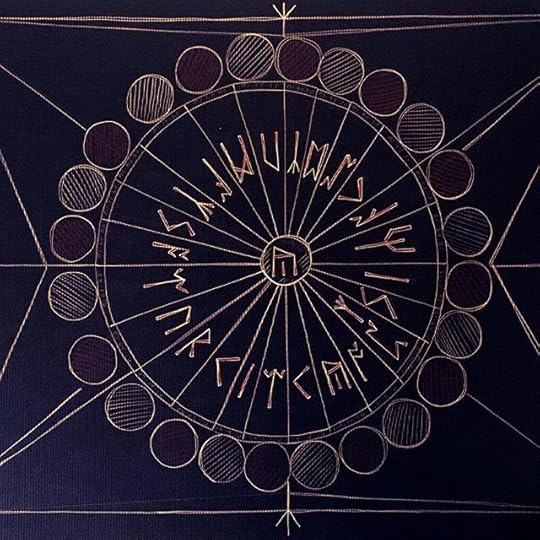 This is my rune wheel for the year. It began with the dark moon of November last.This is my third such wheel, begun in ceremony with Ingrid Kincaid. Every dark moon we have a reading.Yesterday I needed to make something. I felt overwhelmed with the grief of this lunar year.The losses, real deaths, and the completions of cycles begun long ago.Art for me is a means to integration.Writing used to be my primary way to access this synthesis, but now it is only art that gives me the feeling of drift, enchantment, trance.I drew my wheel large, and cried as I drew, recognizing the things that happened at the beginning of the wheel, the pains opening now.Yesterday someone posted a picture of me from eight years ago on social media. I showed it to my husband and he said, look how young you were.Yes, I was young.These last eight years have held lifetimes of grief, constant transition, continual conflict. And yet...I've grown. I am stronger and more sure. My art reflects this transformation from youth to middle age.Eight years ago I wasn't drawing, only writing stories.Eight years ago my children were seven and four. I'd been divorced for just a year and a half and was getting ready to start my first semester of full time teaching.Eight years ago I met my current husband after praying in the hazelnut orchard for a whole, reciprocal love.Eight years ago I could not have imagined my life now.I feel a tremendous tenderness for that woman I was, for her innocence and, yes, naiveté. I also feel pain. I would change nothing. What I live is my own doing.But I can grieve for what was lost. Yes, I can do that.