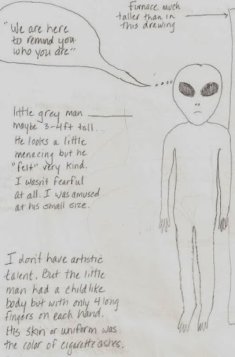 My mother recalls me coming home from school and talking about Mr. Swann and the flying saucer, (Mom was concerned about me being escorted into the basement of the school by the janitor, but after asking me several questions, and was satisfied that nothing inappropriate had occurred). But I never mentioned the little man. Something tells me I wasn't supposed to remember the man until later in life. Because I did not remember the man until I was 29. My school friend only remembers the craft, and described it as having no bolts or rivets (she grew up with a dad who flew a small plane and would know those terms to describe a plane). She has no recollection of a "little man" but again, she fell asleep when he appeared!