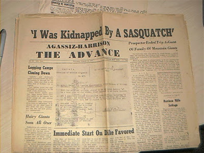 April 9, 1934 -- Vancouver B.C. (U.P.) America's first sasquatch-catching expedition headed into the mountains of British Columbia to-day on a hunt for the horrible, hairy, naked bogey-man of Indian legend.