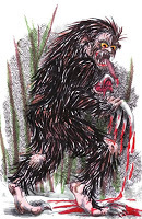 Native American versions of the creature spoke of a gigantic spirit, over fifteen feet tall, that had once been human but had been transformed into a creature by the use of magic. Though all of the descriptions of the creature vary slightly, the Wendigo is generally said to have glowing eyes, long yellowed fangs and overly long tongues. Most have a sallow, yellowish skin but others are said to be matted with hair. They are tall and lanky and are driven by a horrible hunger.
