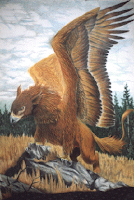 The final sighting, as far as I know, took place on June 30, 1987. The witness, David, was a Baltimore Gas and Electric employee who, along with his partner, was working along the power line that runs north to south through the state park. At a point north of Hilltop Rd. near the old mill village is an abandoned church graveyard. The former church was razed in the 1930s but the graveyard was left on its own, thus, it was severely overgrown by the woods. David observed a large bird-like creature that he described as a 'Gryphon,' though he admits that he didn't get a very good look at it. He only noticed the creature after hearing a rustling sound which he thought was probably deer moving through the woods. He said the creature raised up from a rock, spread its wings and vanished. David admitted that the sight of this beast was a shock and that he did not want to go back to the location.