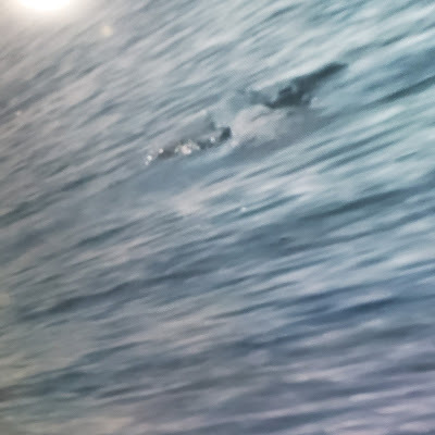 It was a greyish-blue, with no real identifiable traits. Skin looked smooth, and had some lighter stripes. At least two of them, right next to each other. That surfacing was really short and then they disappeared.
