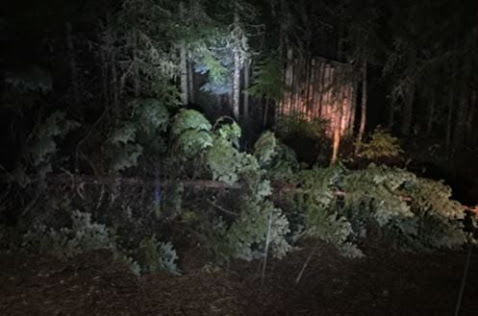 A few days later we returned back to camp after dark. As we turned down the entrance to our camp we saw the second tree, another tree was down in camp. We noticed it immediately. As we pulled in this one was around 25 feet tall and very healthy. Rob hit it with his flashlight and I snapped a couple of photos with my phone. This tree was big and it almost hit our camp table. There was no wind all that day, in fact, there was no wind the entire week. We couldn't believe this was happening. It was really hard for us to wrap our heads around it all.