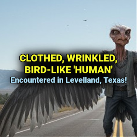 CLOTHED, WRINKLED, BIRD-LIKE 'HUMAN' Encountered in Levelland, Texas!