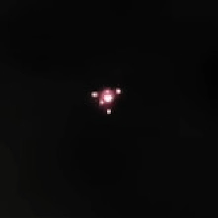 Deby kindly helped me and shared her experience. She reported having seen two lights at a considerably low altitude that same day. One of them was in front of her house, with a green and red coloration, while the other, located behind the house, was orange in color and considerably larger.