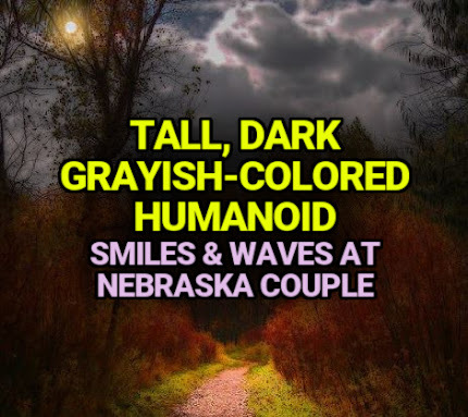 TALL, DARK GRAYISH-COLORED HUMANOID Smiles & Waves at Nebraska Couple