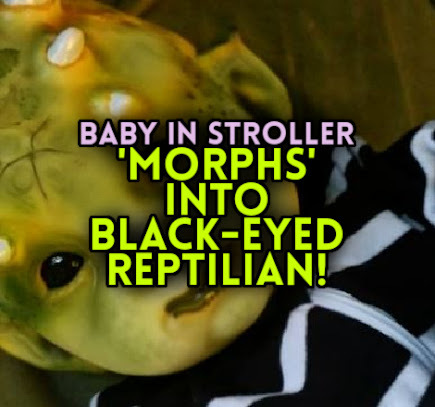 Baby in Stroller 'MORPHS' INTO BLACK-EYED REPTILIAN!