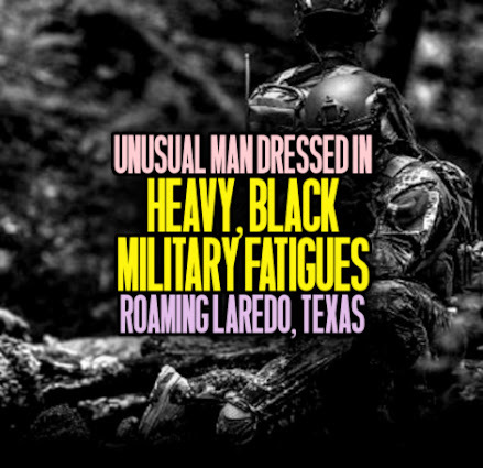 Unusual Man Dressed in HEAVY, BLACK MILITARY FATIGUES Roaming Laredo, Texas