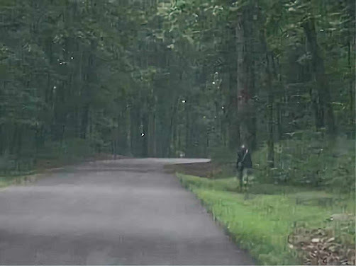 They might not have spotted the figure down the side road if they had not been driving slowly and looking around for grouse. Suzy, the mother, spotted it first and shouted "What the Hell was that?" Jeff hit the brakes and backed up.