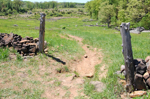 On July 2, 1863, in a series of attacks and counter-attacks that lasted over two hours, the Union position was ultimately crushed and held by the Confederates. Above Devil's Den is a parcel of land with a stone wall and a wooden gate. This field in the shape of a triangle sets between the Peach Orchard and Devil's Den.