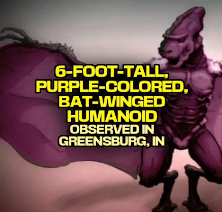 6-FOOT-TALL, PURPLE-COLORED BAT-WINGED HUMANOID Observed in Greensburg, Indiana
