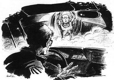 He had slowed nearly to a stop when he came up to the object, but then fear took over and he hit on the accelerator and left the object behind. He said that when he did so, the inside of his car became dark and he heard a swishing sound like branches of a tree brushing against the car.