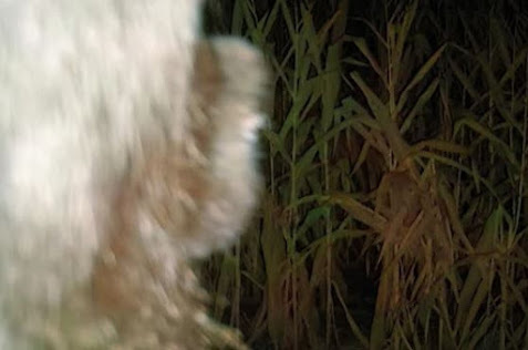I continued on the trail about a mile to the first clearing where I usually crept around a corner before I got there. There may be some deer that I would stop and watch from a distance. This time there were no deer. I started to walk the clearing. The feed plot was set up by the fish and game club and the lake edge was about 200 yards away. Then, the normal animal sounds in the area got deathly quiet. I felt like was being watched by something in the woods, It just doesn't get silent like that. I immediately went on guard. At this point, I was standing in the middle of the clearing away from the tree line. I'll admit, I was scared. I turned around to see if I could retreat back the way I came from because I had no gun or weapon on me. I was Ill prepared to defend myself if I needed to.