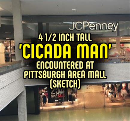4 1/2 Inch Tall 'CICADA MAN' Encountered in Pittsburgh Area Mall (SKETCH)