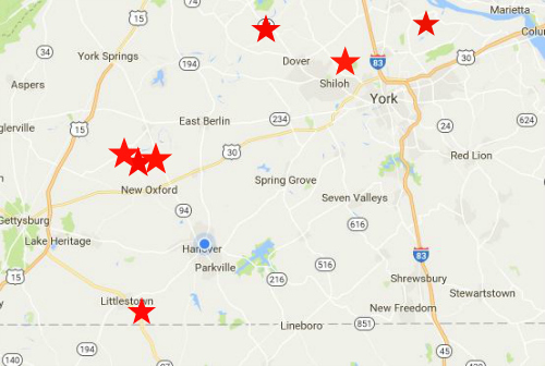 NOTE: Was this a Mothman or something similar to the Conewago Phantom? There was a similar occurrence near Littlestown, PA in September 2015. Timothy Renner told me that he had an unexplained encounter in Codorus Furnace. The map below marks the locations of reports I have received pertaining to flying humanoids (including my residence in Hanover, PA) in this area. There have also been a few other general reports, including an encounter near Lancaster and possible sightings along the Conewago Creek. I have not marked those reports on the map. What are people encountering here in south-central Pennsylvania? Lon