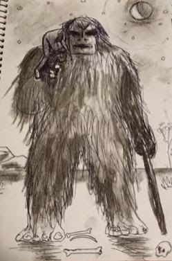 Our people have been in the desert since the dream time. We are Wangkatha. That is also the name of our language. We have spoken the same language for over 60,000 years. The Europeans only just got here in the 1800s. Our people know the desert and everything in it and how to survive and be safe. There are some places that are especially dangerous because of who lives there. The Gaarnbunno are very tall and covered all over in long black hair. They look like a giant hairy man they live in the rocky caves and these days they even live in the old abandoned mine shafts left over from the gold rush. They capture adults and children, throw them over their enormous shoulders, and carry them back to their dark caves and mine shafts. They kill and eat them. They leave big piles of animal and human bones all around their lair.