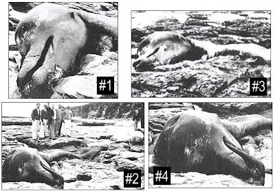 "On June 4, 1925, the newspapers of Santa Cruz and San Francisco, California, apprised the public of the occurrence of a sea serpent, or other more or less fabled marine monster in California waters. A few days prior to the newspaper stories, the remains of a large marine animal had been washed ashore on the beach at Santa Cruz, California. Decomposition had set in, and close examination of the carcass was not lightly undertaken. Consequently, the tales were the result of distant and hasty examination. When the news of the presence of this creature reached Dr. Barton Warren Evermann, of the California Academy of Sciences, he visited the spot and pronounced the "sea serpent" to be the eviscerated carcass of a beaked whale. More specific identification was impossible at that time, but arrangements were made to have the skull preserved and it is now incorporated in the collections of the California Academy of Sciences.