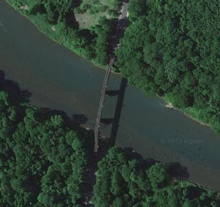NOTE: I know that this is a very brief account, but what caught my attention is that I have heard & read several incidents occurring at that same location. The railroad bridge is located on the west branch of the Susquehanna River and can be seen from I-80. Below is a photo and an overhead view.