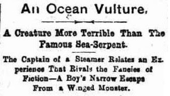 In 1888 the SS Talisman was off the coast of Chile when it was suddenly attacked by a monstrous bird. The creature was said to be 'more terrible than the famous sea serpent in those waters!'