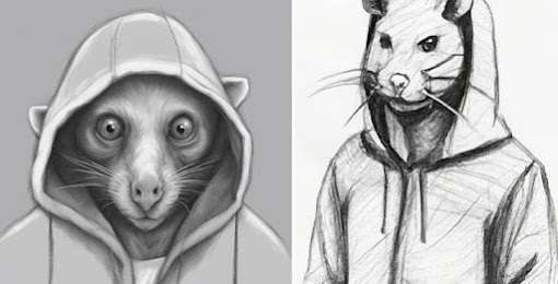 Above image information: The image on the left was provided by the original poster. ("So as a follow-up I had my long-term partner draw this sketch of what he looked like. The only difference is the man didn't have fur or ears"). The image on the right was provided by a commenter ("A picture my partner drew for me. Resemblance is shockingly similar!")