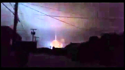 NOTE: I received an email from a woman who stated that her friend lives about a mile from the power plant. She tells me that at 1:10 AM this friend witnessed a distinct bright beam of light just before the explosion. Her words were, 'It came down from the heavens.' She said that she also noticed subsequent beams of light after the explosion. The witness was outside at the time and noted that she didn't hear any loud noises...just the bright beam of light and the light from the explosion. I have made a few inquiries over the years, but there has been no confirmation of the incident other than what I received at the time of the incident. If anyone else has supporting information, please forward it to me. Thanks. Lon