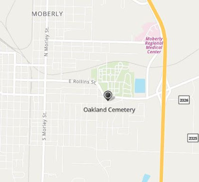 In early 2002 a UFO/UAP eyewitness saw a huge dark pyramid-shaped craft descend and hover over Rollins St. in Moberly, Missouri adjacent to Oakland Cemetery. Interesting sighting.