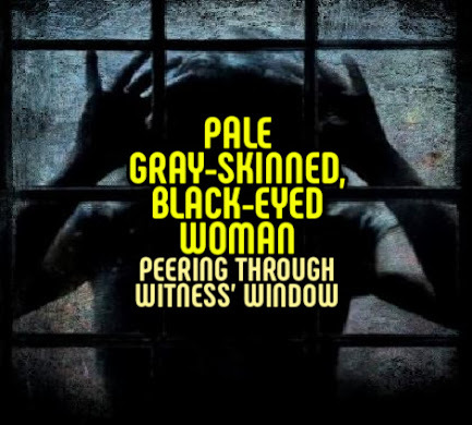 PALE GRAY-SKINNED, BLACK-EYED WOMAN Peering Through Witness' Window