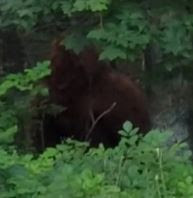 The creature’s face is completely covered in brown fur with just a hint of a mouth able to be seen from the distance of the camera, which is surprisingly close for such unsteady footage. It’s so completely covered in fur that it seems like the backside of a bear at first glance, but as it turns to leave the profile of its head shows the distinct dome-shape and sloping forehead associated with gorillas - or with bigfoot creatures. It disappears into the forest on two legs, revealing a bipedal profile that is very unlike a bear."