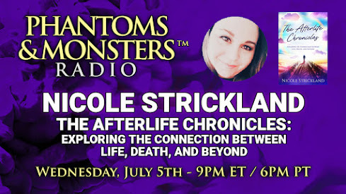 Welcome to Phantoms & Monsters Radio. My guest is paranormal investigator & author Nicole Strickland. We will be discussing her most recent title 'The Afterlife Chronicles: Exploring the Connection Between Life, Death, and Beyond. Join us in the chat.
