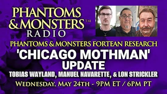 Thanks for joining us on Phantoms & Monsters Radio. Tobias Wayland, Manuel Navarette, & Lon Strickler discuss the Chicago / Lake Michigan Mothman updates. Join us in the chat, and ask us questions about the phenomenon.